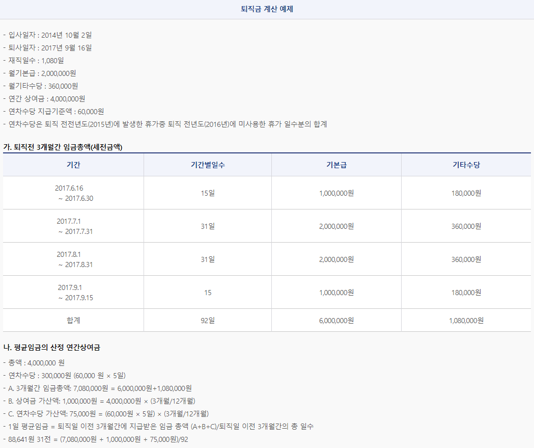 고용노동부 퇴직금 계산기 바로가기 하기 위해서는 위쪽에 바로가기 링크가 있으니 클릭후 이동해 주세요. 고용노동부 홈페이지로 들어 가면 퇴직금 계산기를 사용 할수 있습니다. 위를 보면 빈칸에 정해진 값만 넣으시면 퇴직금 계산기 사용 할수 있습니다. 퇴직금 계산방법은 아래에 있으니 참고해 주세요.