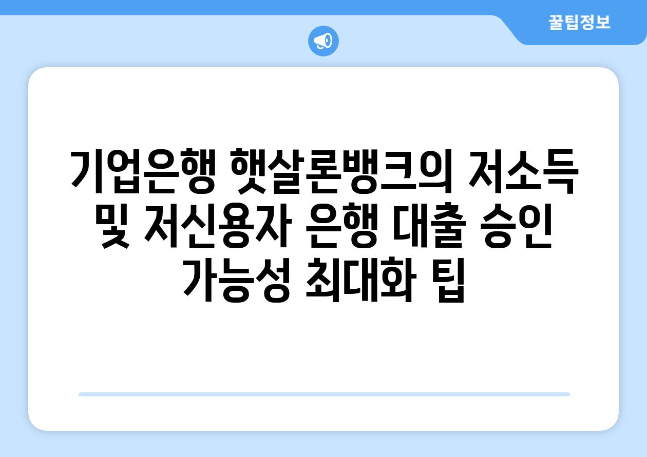 | 기업은행 햇살론뱅크의 저소득 및 저신용자 은행 대출 승인 가능성 최대화 팁 |