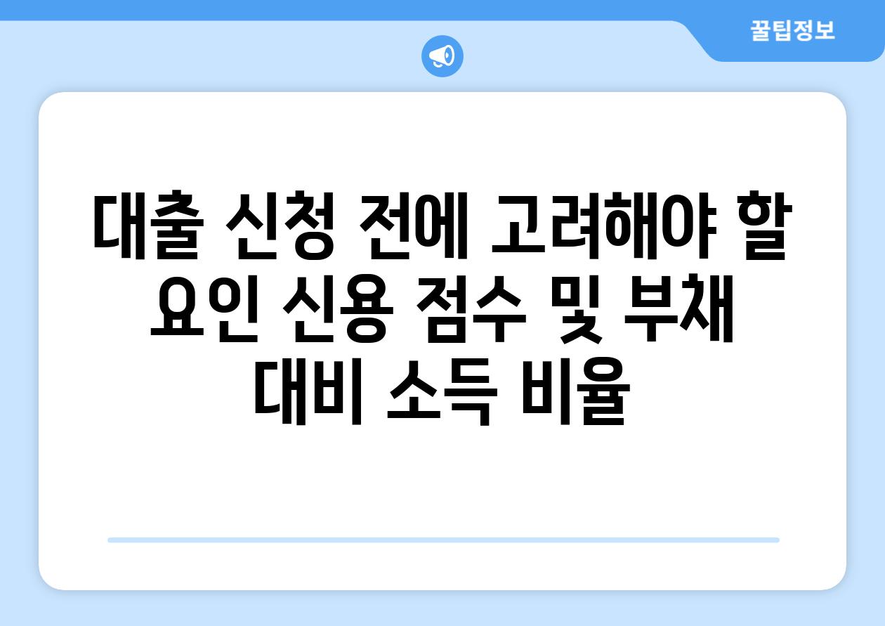| 대출 신청 전에 고려해야 할 요인 신용 점수 및 부채 대비 소득 비율 |