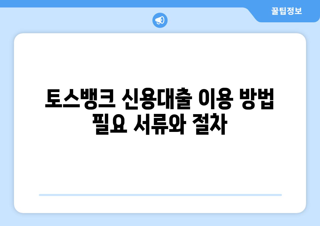 | 토스뱅크 신용대출 이용 방법 필요 서류와 절차 |