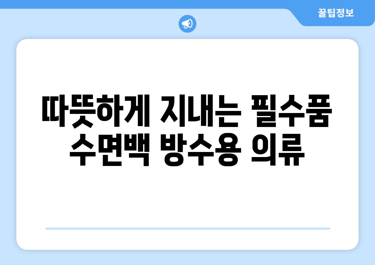 따뜻하게 지내는 필수품 수면백, 방수용 의류